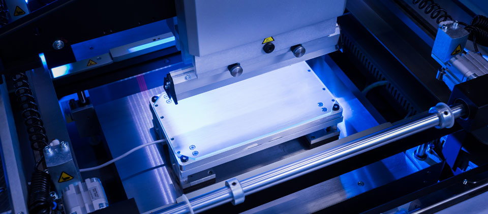 El dispositivo con sensores se monta en la mesa de impresión y se conecta a un ordenador portátil.
